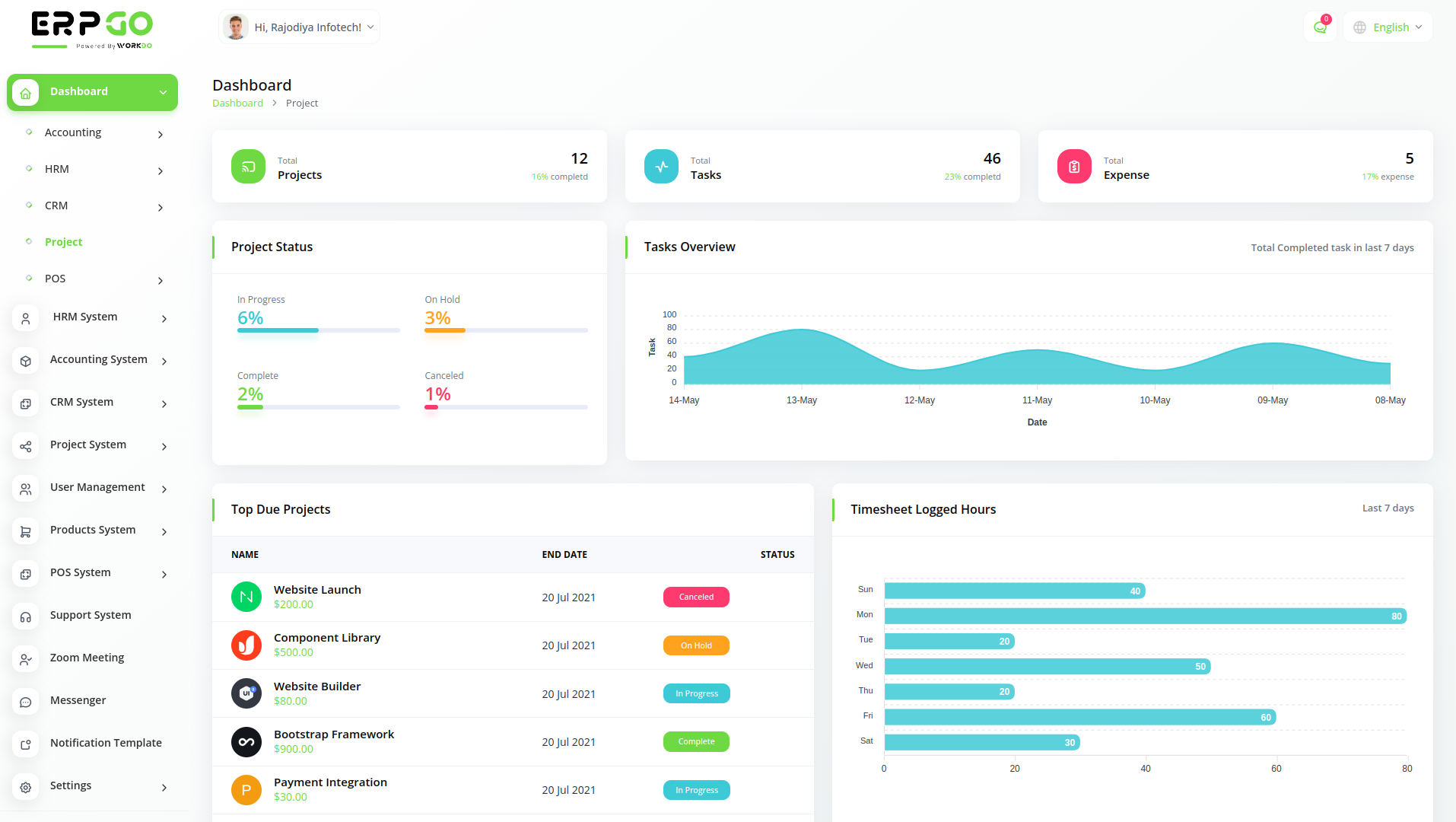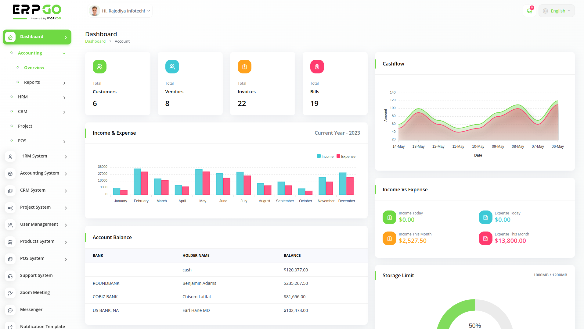 ERPGo SaaS All In One Business ERP With Project, Account, HRM, CRM & POS